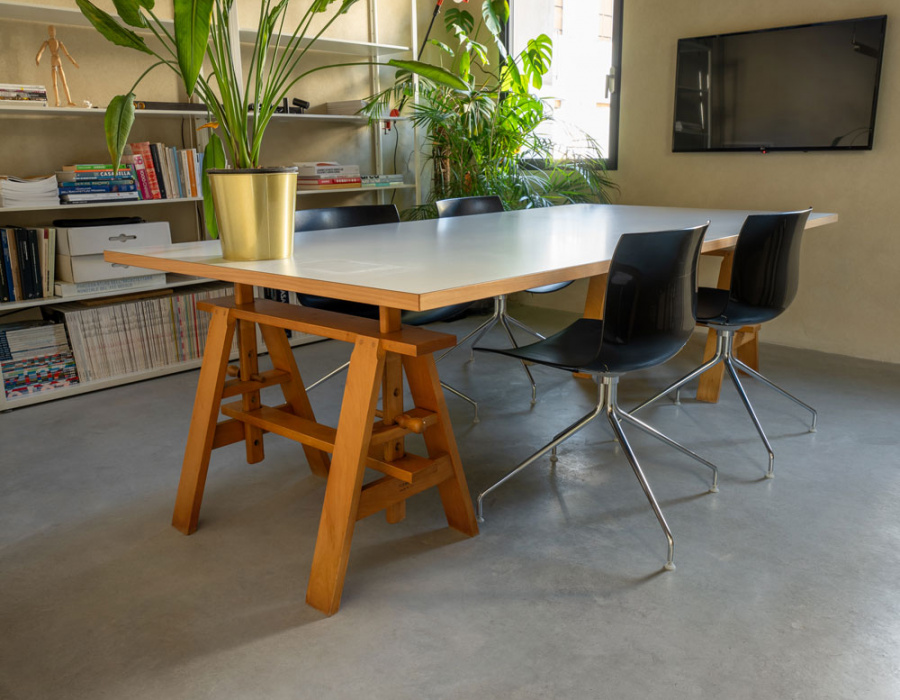 Realisatie: de architectuur-, branding- en art direction studio van Locatelli-Pepato voltooide onlangs de nieuwe werkomgeving met de Deco Nuvolato Isoplam-vloeren. De openslaande deuren die ritmisch in de zichtbare bakstenen muren zijn geplaatst, de trappen van Microverlay-harsbeton en de poederkleurige afwerking van de muren geven een unieke esthetiek aan de studio. De keuze voor Deco Nuvolato Isoplam voegt niet alleen weerstand en duurzaamheid toe aan de vloer, maar completeert ook de algemene ontwerpvisie van de ruimte met elegantie en moderniteit.