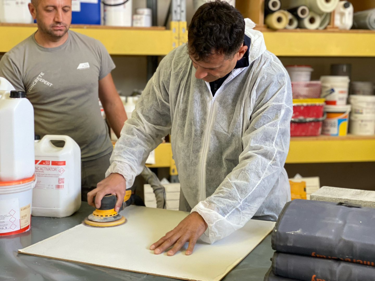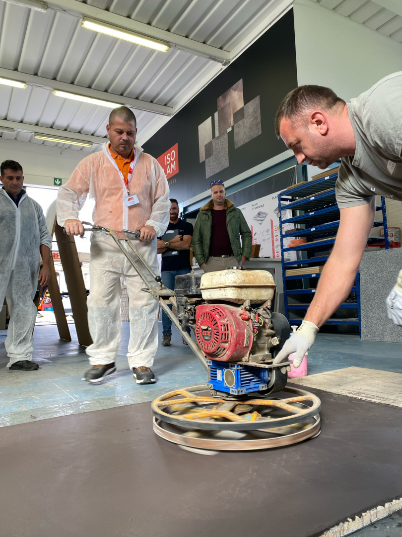 De producten en toepassingssystemen worden getest door hun eigenaardigheden uit de eerste hand aan te raken, in een sfeer van dialoog en sterke motivatie: het Isoplam-team biedt 40 jaar technische ervaring op het gebied van producten, expertise en knowhow in beton, mortels, harsen en decoratieve coatings. .