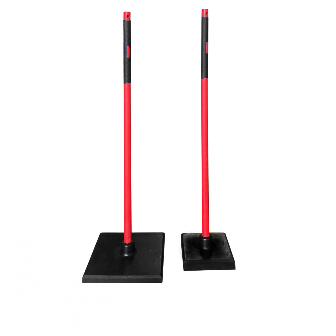 Deze rubberen stamper met anti-schokhandgreep, ook wel tamper genoemd, is onmisbaar voor diegenen die de techniek van printbetonvloeren gebruiken, omdat hiermee tijdens het bedrukken een uniforme kracht op het gehele oppervlak van de mal kan worden uitgeoefend. Als de vloer moeilijk te bedrukken is, is er ook de versie met een ijzeren basis, zodat naast beton ook asfalt bedrukt kan worden.